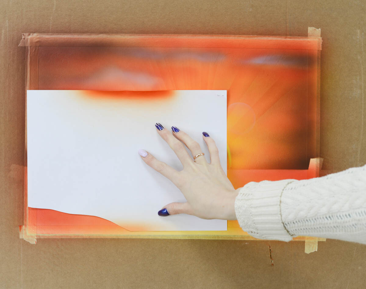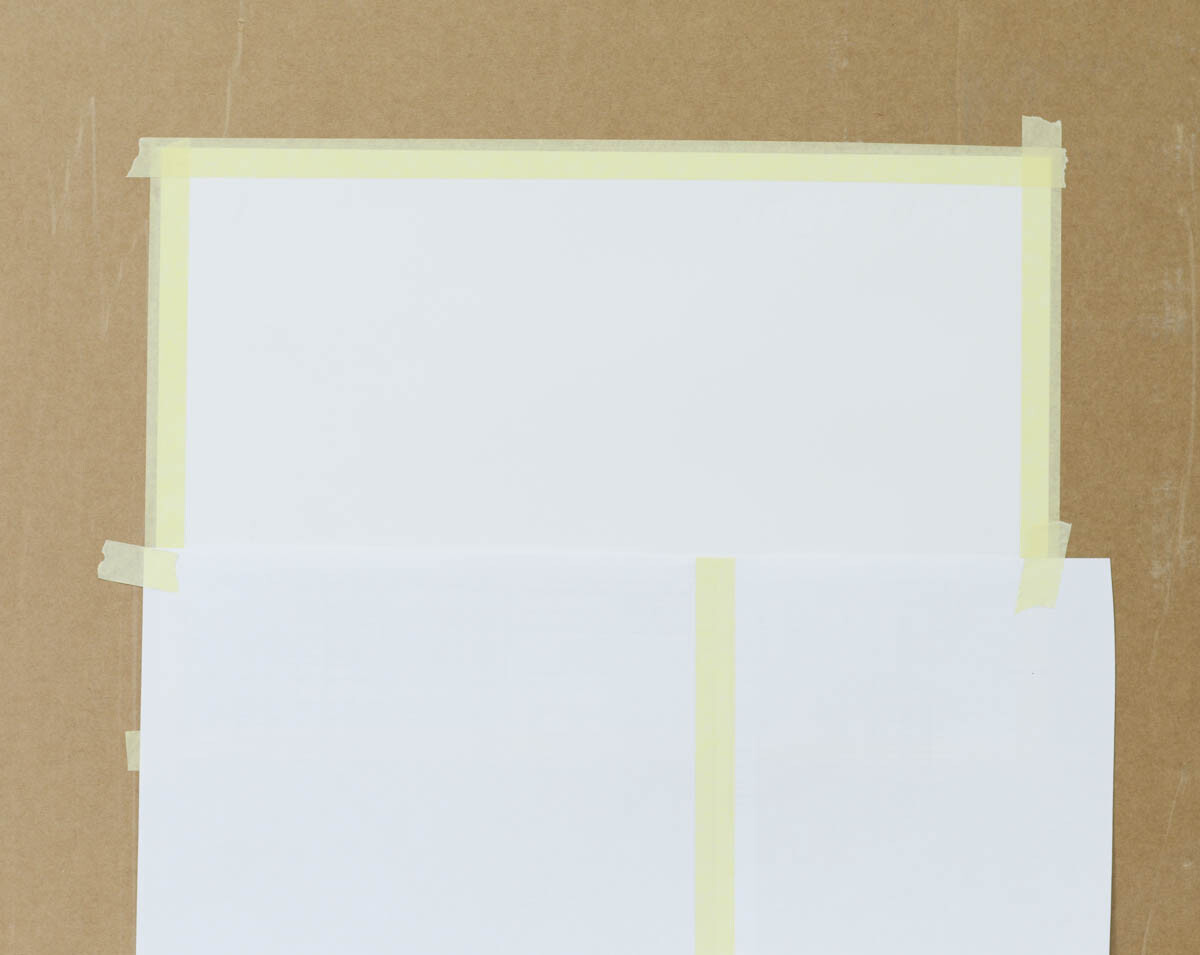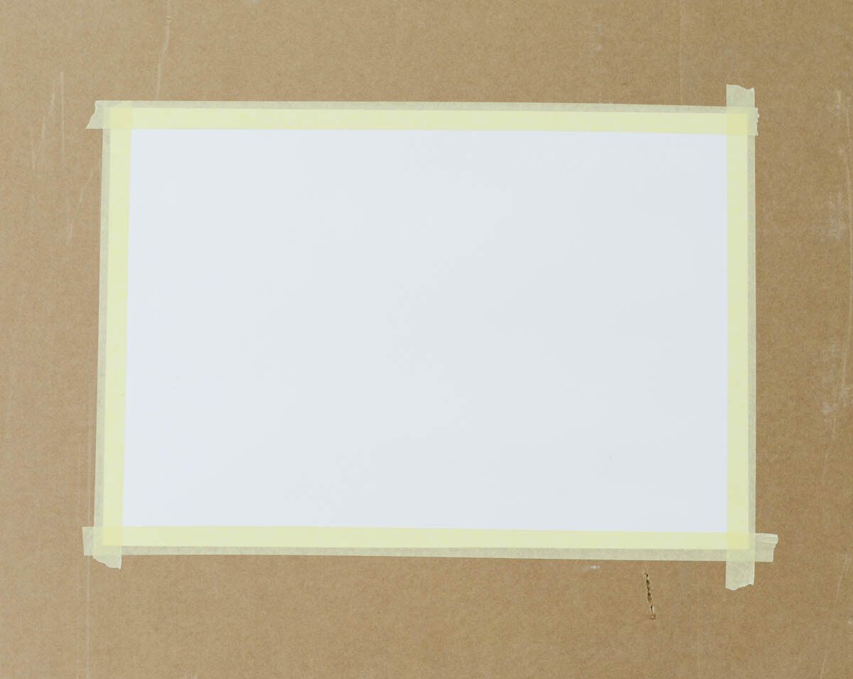 1) Обклеиваем лист бумаги по всему периметру малярным скотчем,