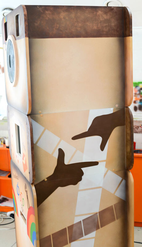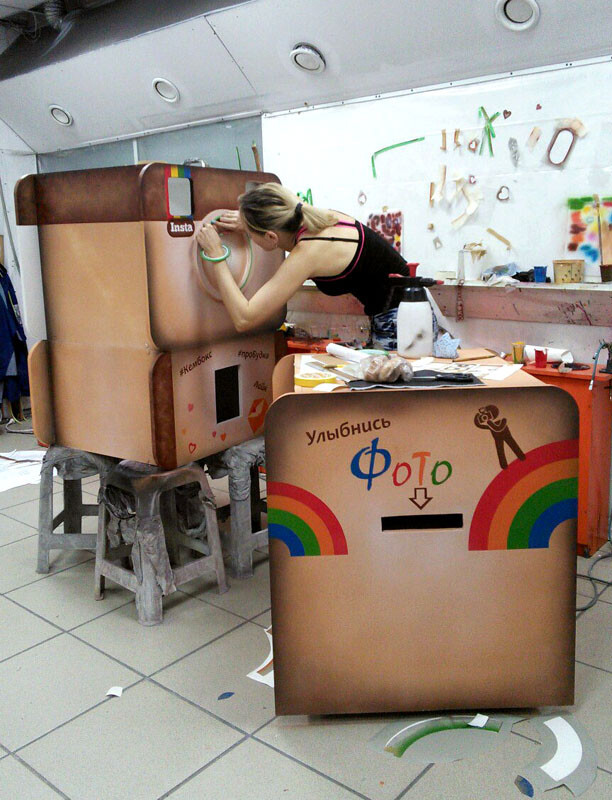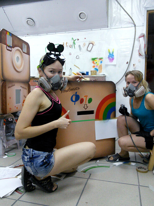 Тем временем, над дизайном работали Наталья и Светлана. Перед ними стояла задача - учесть все пожелания заказчика и придумать интересный, привлекательный внешний вид фотобудки. За основу дизайн-проекта было решено взять всемирно известную иконку инстаграма.