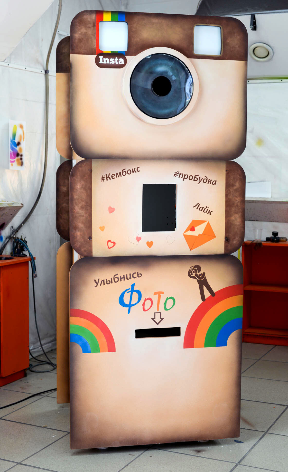 Не так давно, к нам обратился клиент с целью расписать необычный предмет. В ходе разговора выяснилось, что речь идет о специальной конструкции, в которую встроена фотокамера, планшет и принтер. Это изделие называется фотобудка и служит она для развлечения гостей на различных праздничных мероприятиях. Люди подходят к ней, фотографируются, выбирают понравившиеся фотографии и тут же их распечатывают.