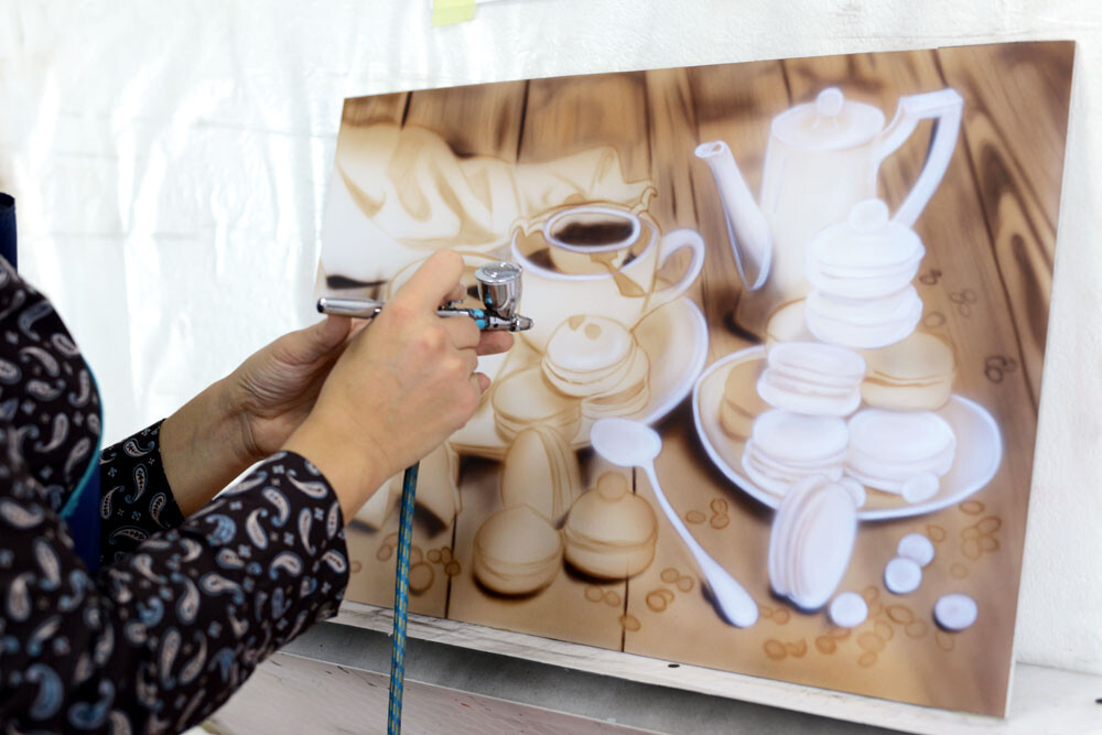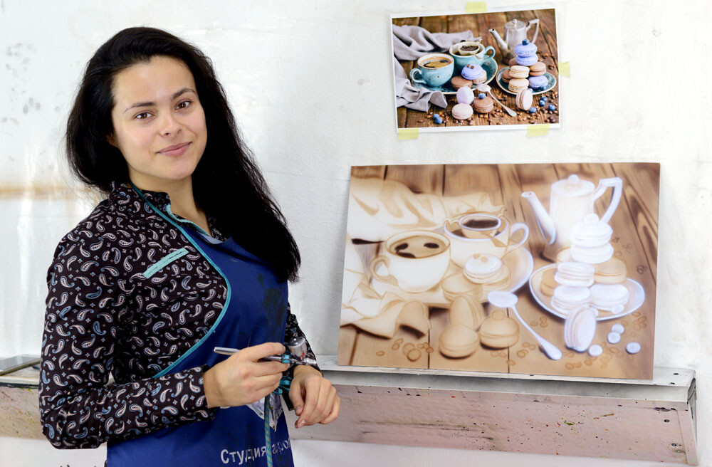 Дарья: - Технику аэрография я решила освоить в августе 2017. Случайно в Инстаграмме попала на аккаунт одного парня, который выложил фотографии со своими работами из школы аэрографии Михайловой Светланы. Меня они очень впечатлили, и я захотела научиться рисовать так же круто.